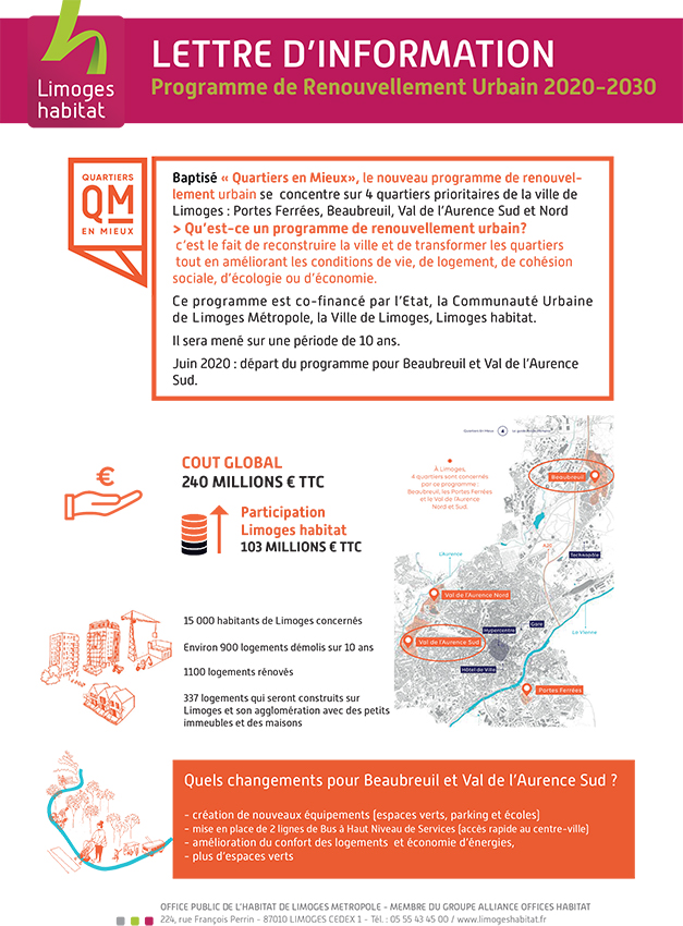 Ce programme est co-financé par l’Etat, la Communauté Urbaine Limoges Métropole, la Ville de Limoges et Limoges habitat.